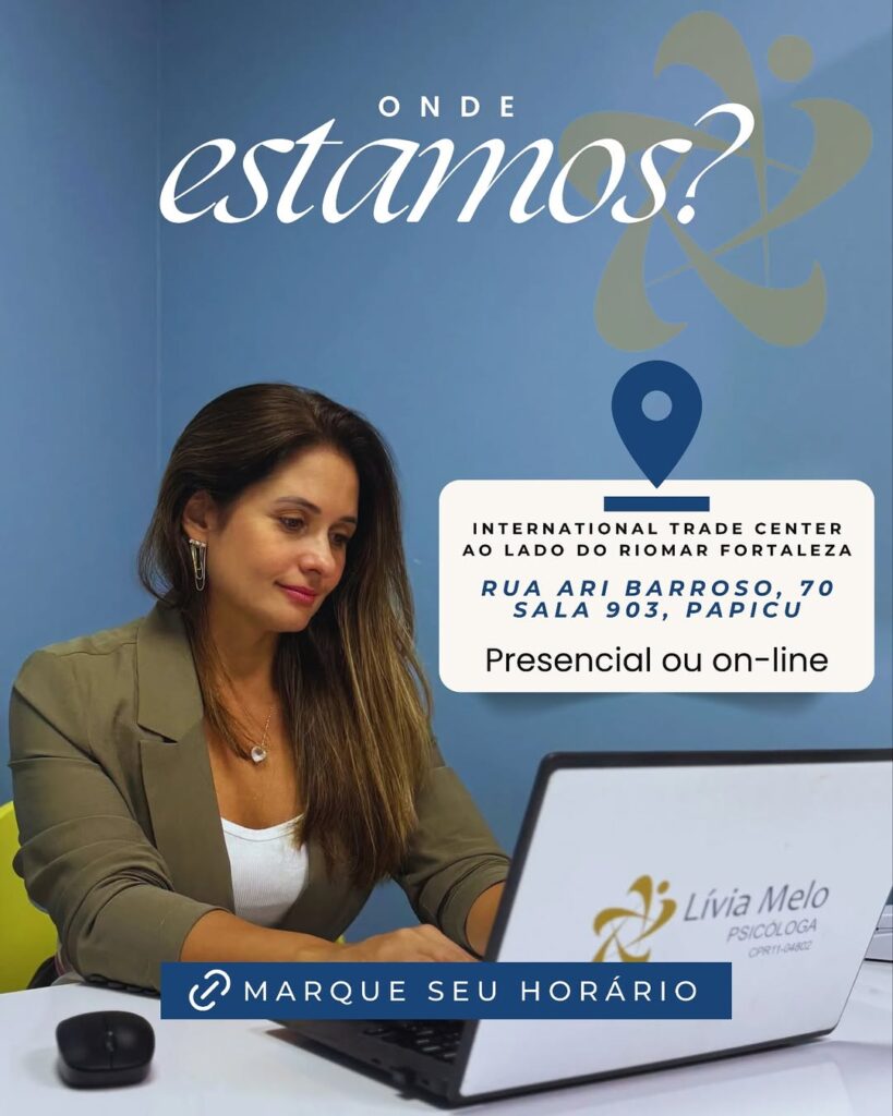 As sessões têm duração de 50 minutos, podem ser semanais e acontecem online (Google Meet) ou presencialmente em Fortaleza.